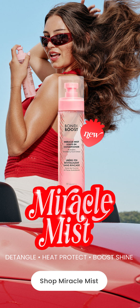 A leave-in conditioning mist powered by antioxidant-rich Australian Strawberry Gum for detangling, heat protection, and shine. -