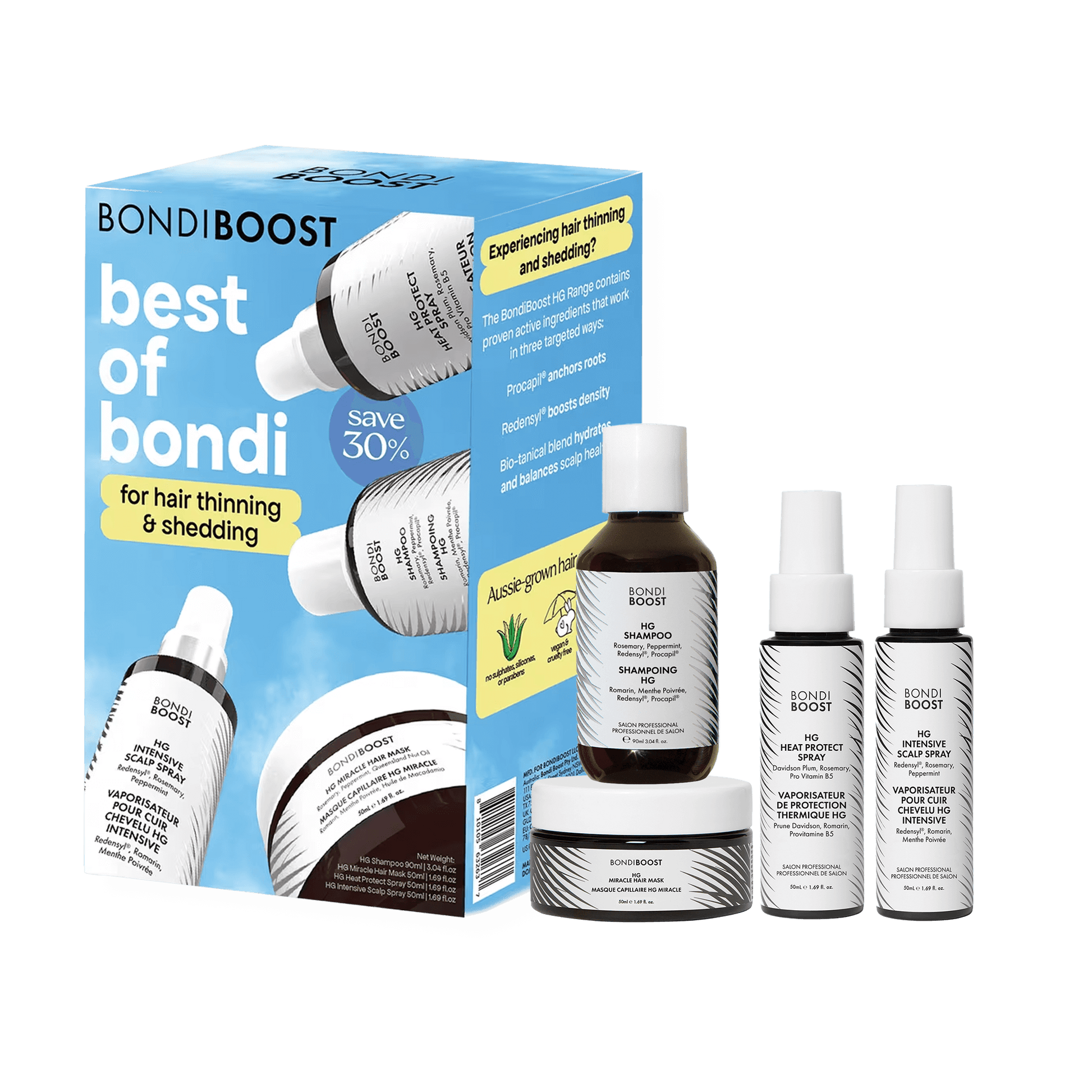Meet the Best of Bondi, your must-have 4-step routine featuring our top-performing essentials for achieving visibly longer, stronger, healthier-looking hair. This curated set brings together the best of BondiBoost so you can experience salon-quality results anytime, anywhere.