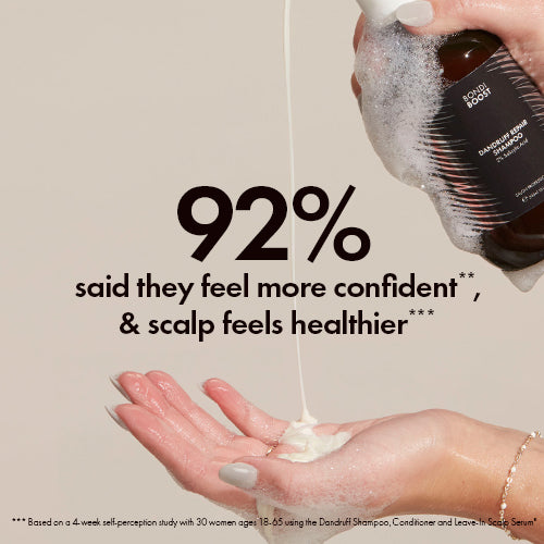 *Based on a 4-week clinical study with 30 women ages 18-65 using the Dandruff Shampoo, Conditioner and Leave-In Scalp Serum