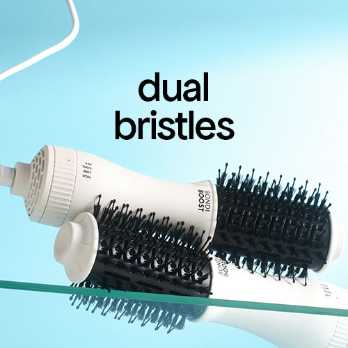 - Place brush underneath each section, near the scalp, and slowly work down until hair is dry.