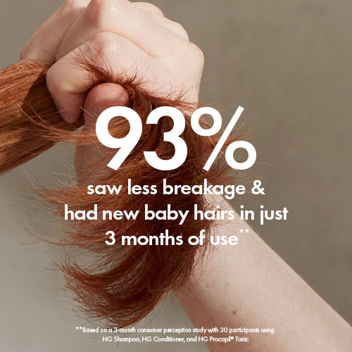 **Based on a 1-month consumer perception study with 30 participants using HG Shampoo, HG Conditioner, and HG Procapil® Tonic