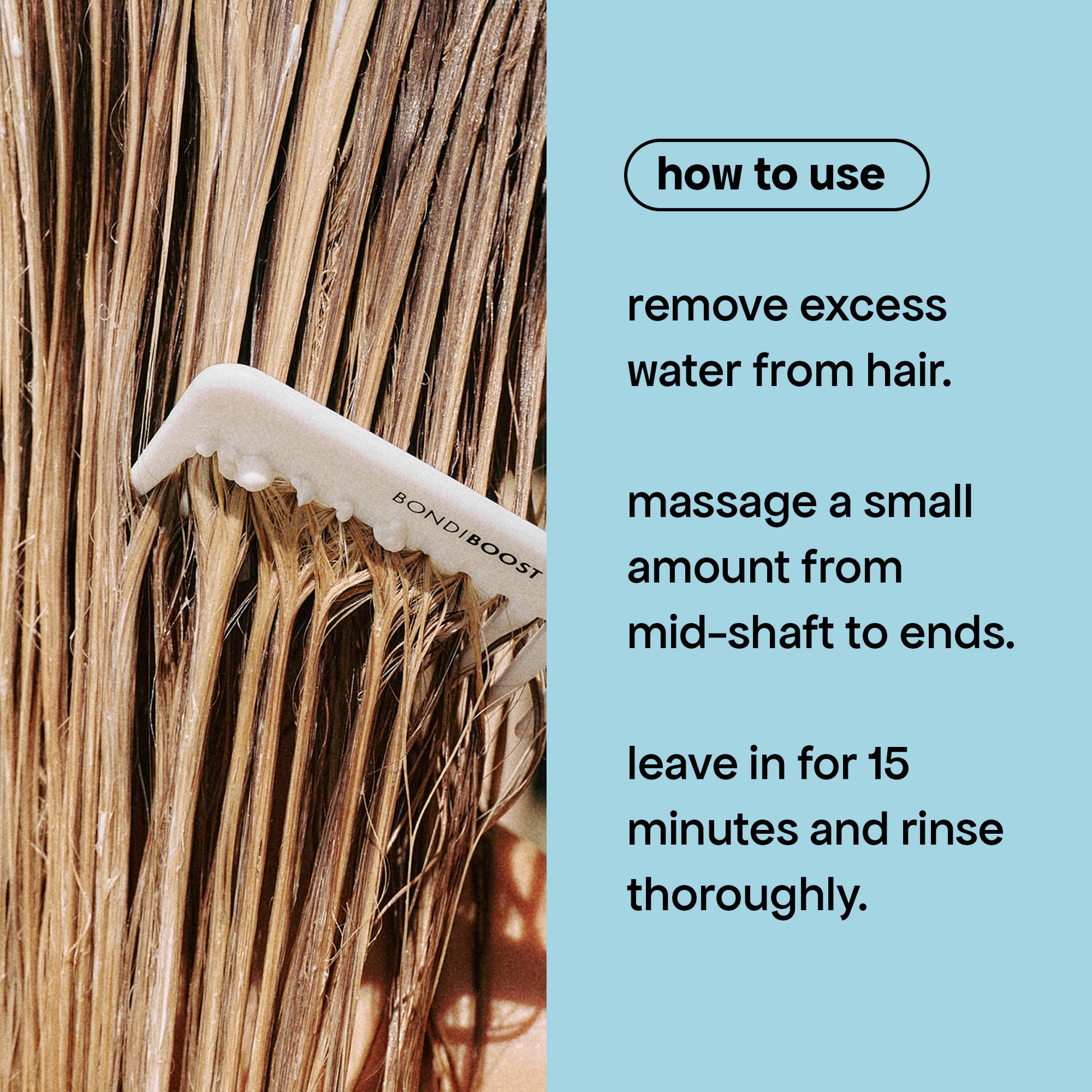 Use once a week in place of conditioner. Remove excess water from hair. Massage a small amount from mid-shaft to ends. Leave in for 15 minutes and rinse thoroughly. For maximum repair, follow with Bond Builder+ Finishing Oil on damp hair to protect, and add shine. Avoid eyes and discontinue use if you notice any irritation.